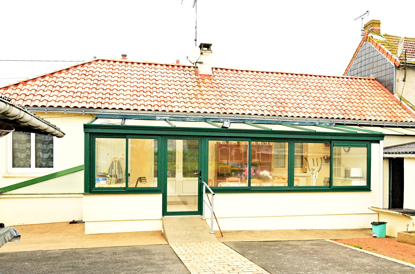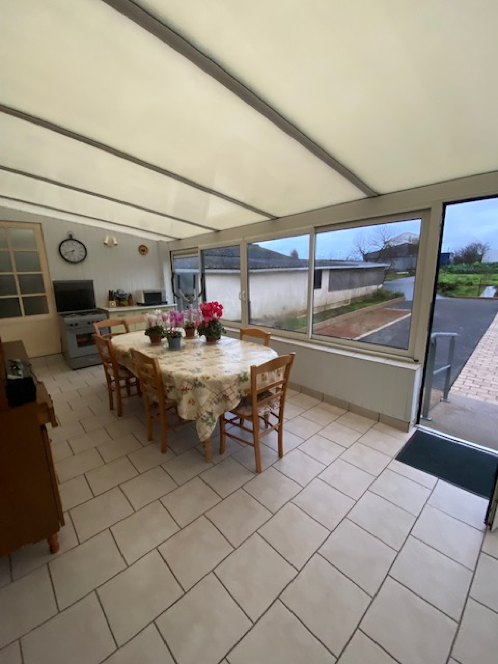 Rèz-de-chaussée: hall et couloir desservant cuisine, salon prolongé par véranda et de plein pied sur jardin, 4 chambres, salle d'eau, wc séparé.