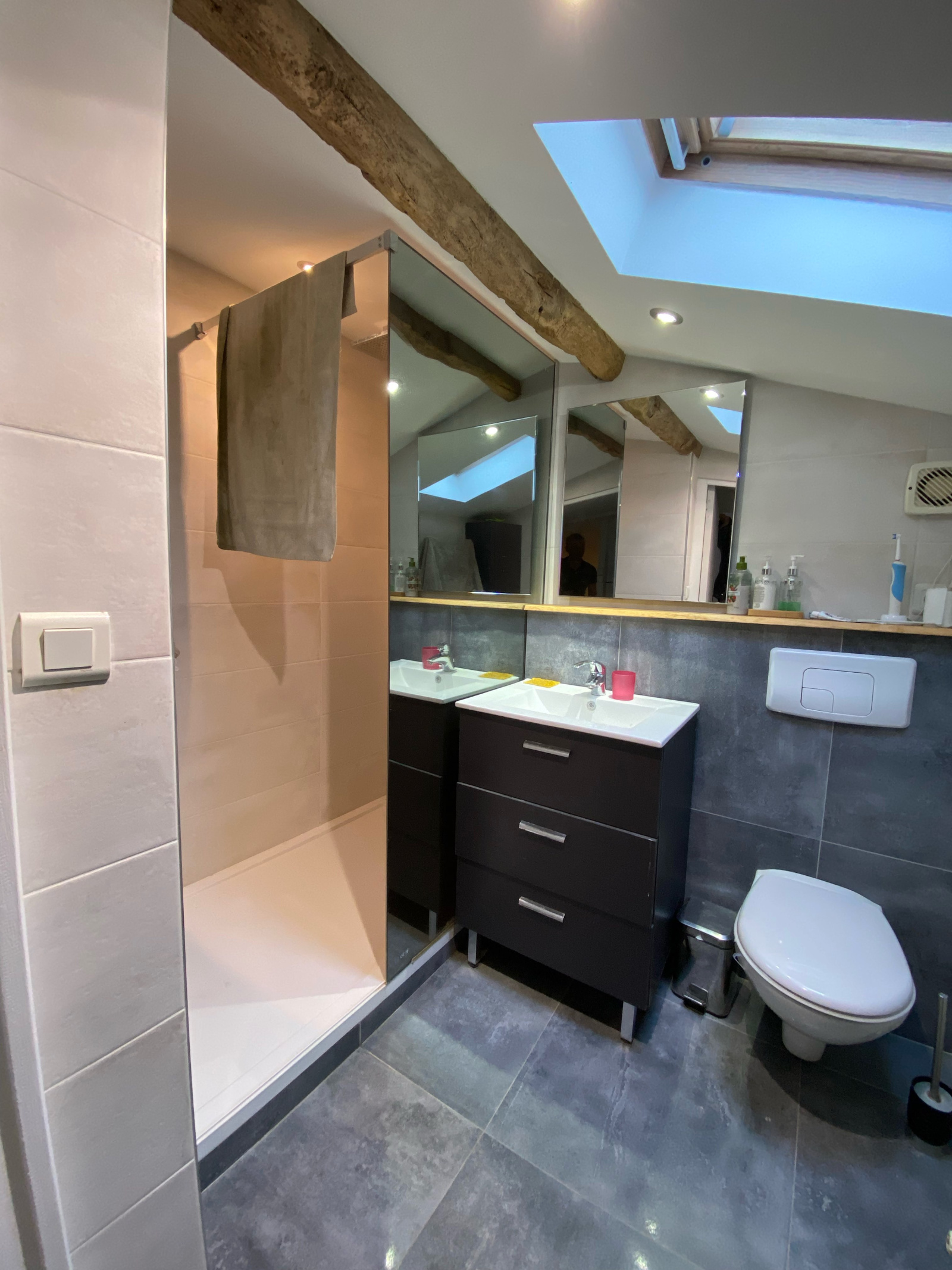 Bon choix pour une première acquisition immobilière. Cette maison comprend un espace à vivre de 24.5m² avec cuisine aménagée et semi équipé, une salle d'eau, 2 chambres + bureau, salle d'eau avec wc. Elle a tout d'une grande les 57m2 en loi carrez + 31m2 en utile dont elle dispose sont très bien aménagés. En plus elle a une buanderie et une cave. Cette habitation vous fait bénéficier à quelques pas de la maison d'un garage avec grenier pour espace de stockage. Le double vitrage garantit la tranquillité des occupants. Pour profiter de l'extérieur, vous disposerez d'un jardin en face Totalité de la surface foncière est de 480m².