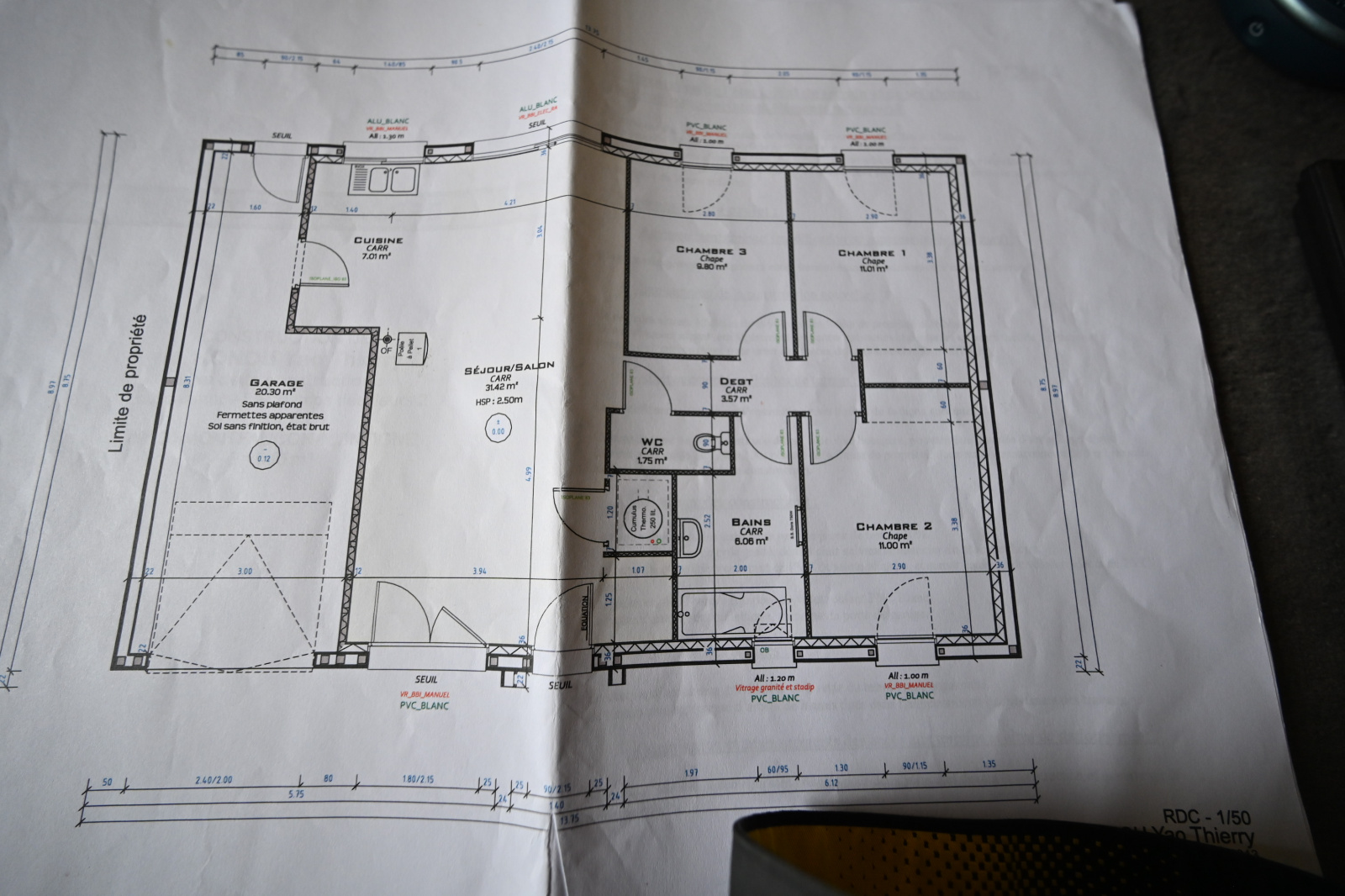 Maison d'habitation à rénover avec entrée dans le séjour double, cuisine, couloir desservant trois chambres, salle de bains et wc. Garage avec espace buanderie et jardin l'ensemble sur 536m2 de terrain.