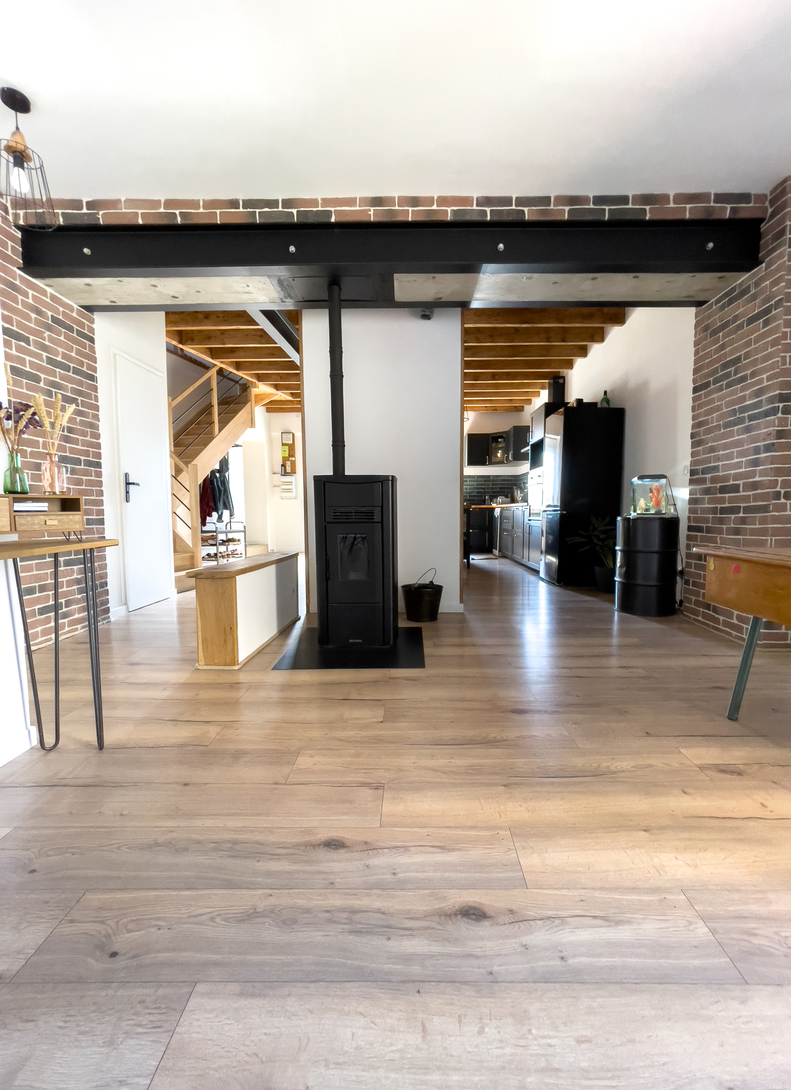 - Composée : d'une Cuisine équipée, d'un salon avec poêle à pellets dans la première partie, d'un Vaste séjour avec toit cathédrale de 45 m² (rénové 2024/2025), lumineux, avec mur et colonne en pierres et poêle à bois, de 4 Chambres (dont 1 suite parentale existante + possibilité de 2e suite), de 2 Salles d'eau/bains + 2 WC, Grande buanderie. Plus de 100 m² de dépendances en pierres (grange ouverte, atelier), et un appentis.