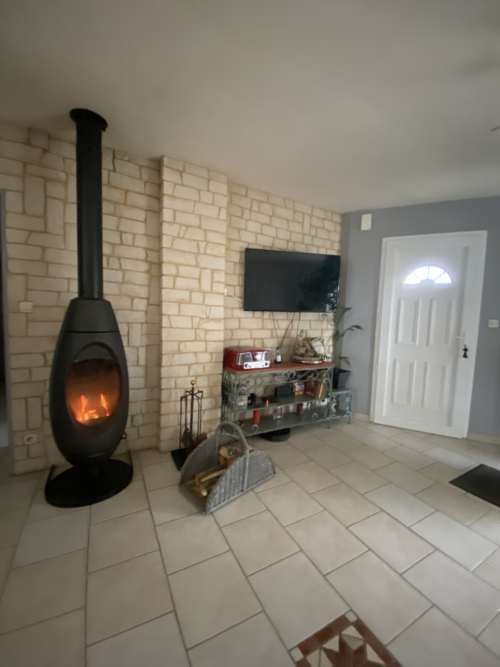 Pavilon de plain pied comprenand une pièce à vivre de 48 m² avec un poêle à bois et unec cuisine équipée , arrière cuisine équipée, 3 chambres, salle de bains , WC séparé.