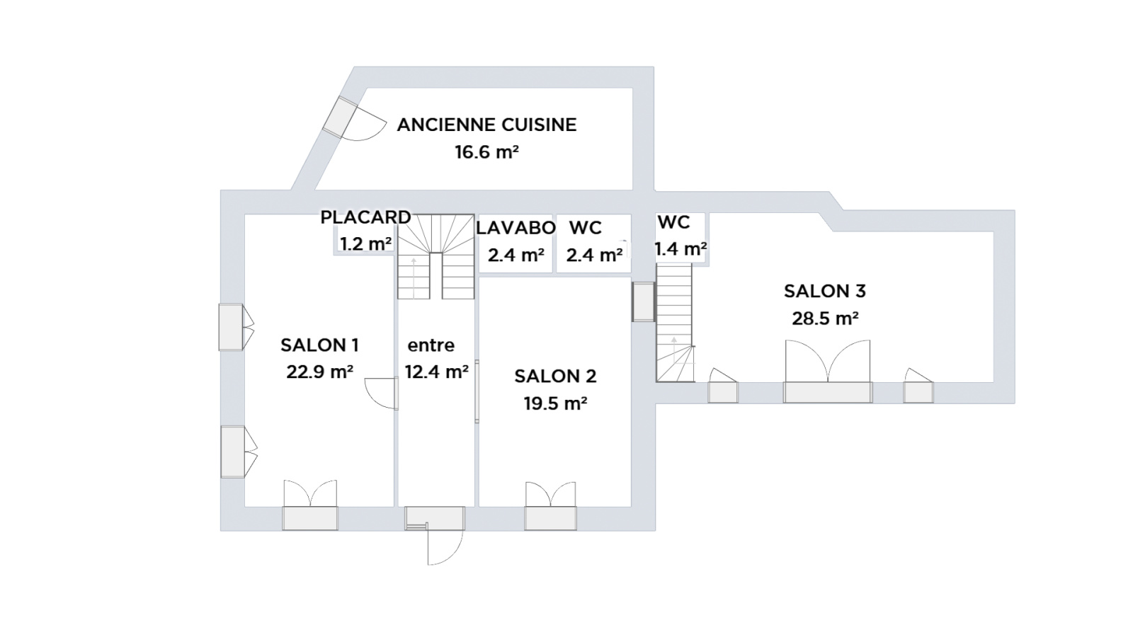 Attenant et communiquant par le réz-de-chaussé : niveau zero: 1 salle et un wc, départ du deuxième escalier. Etage: une salle (2 chambres possibles).