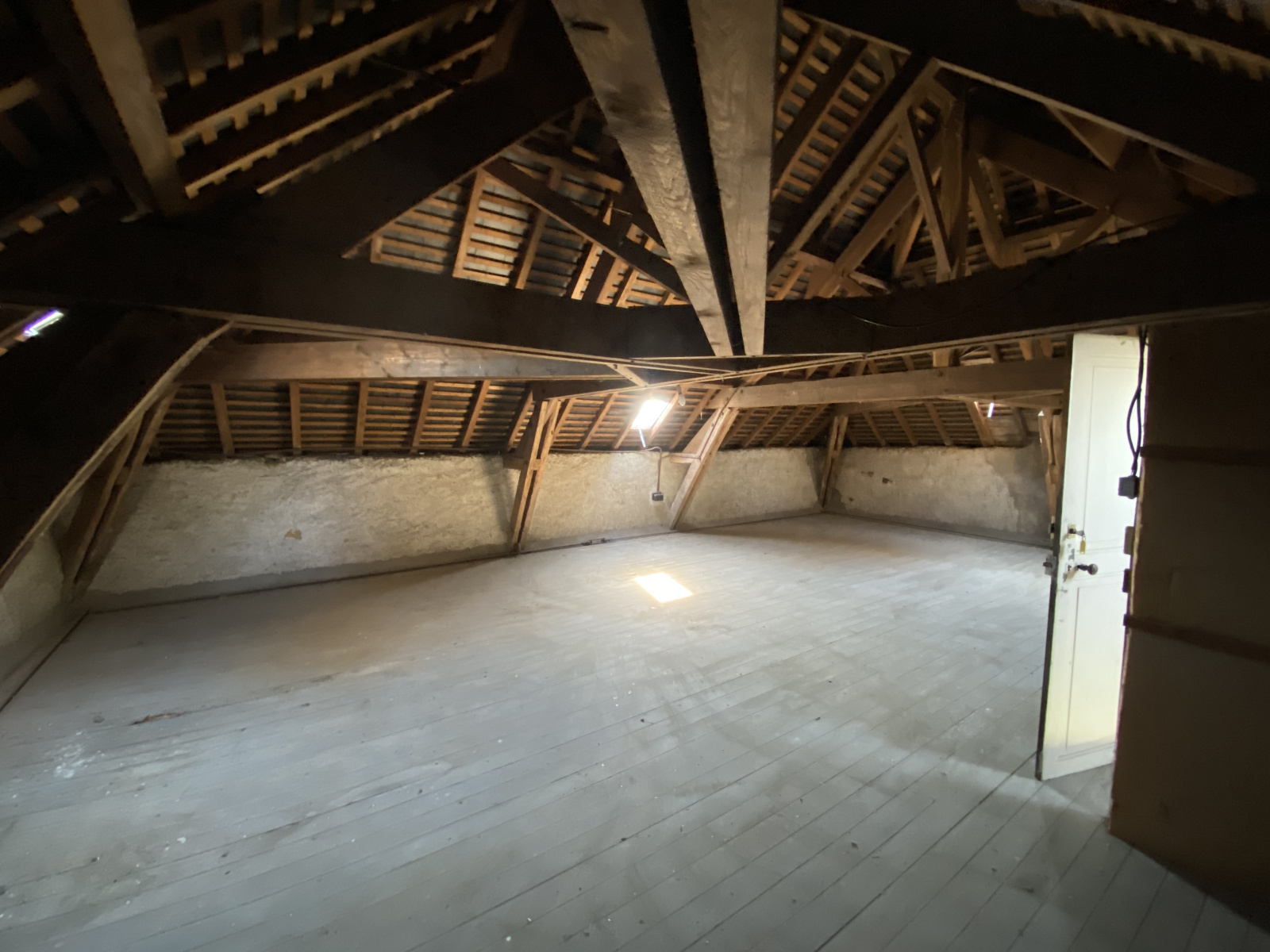 EN EXCLUSIVITE Ancienne bibliothèque TRANSFORMABLE EN HABITATION comprenant sur cave partielle un hall desservant 2 salles et une pièce (ancienne cuisine), wc. Du hall départ de l'escalier en bois pour les deux niveaux. 1er étage: Pallier deux salles (4 chambres possibles). 2ème étage grenier aménageable.