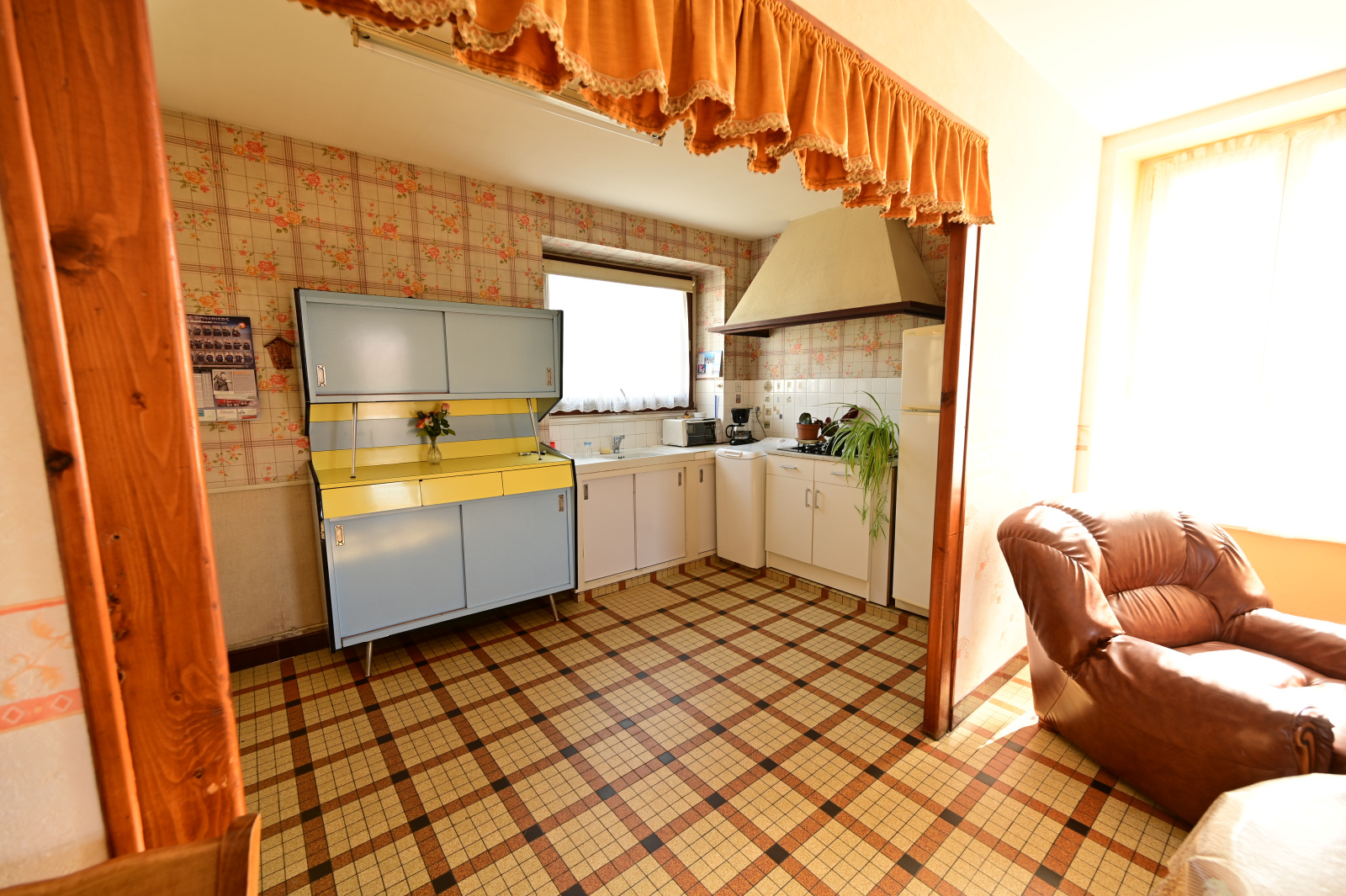 Sèvremoine immobilier vous propose une maison de plain pied à rénover comprenant une pièce de vie avec une cuisine aménagée, deux chambres, un bureau, une salle de bain et des WC.