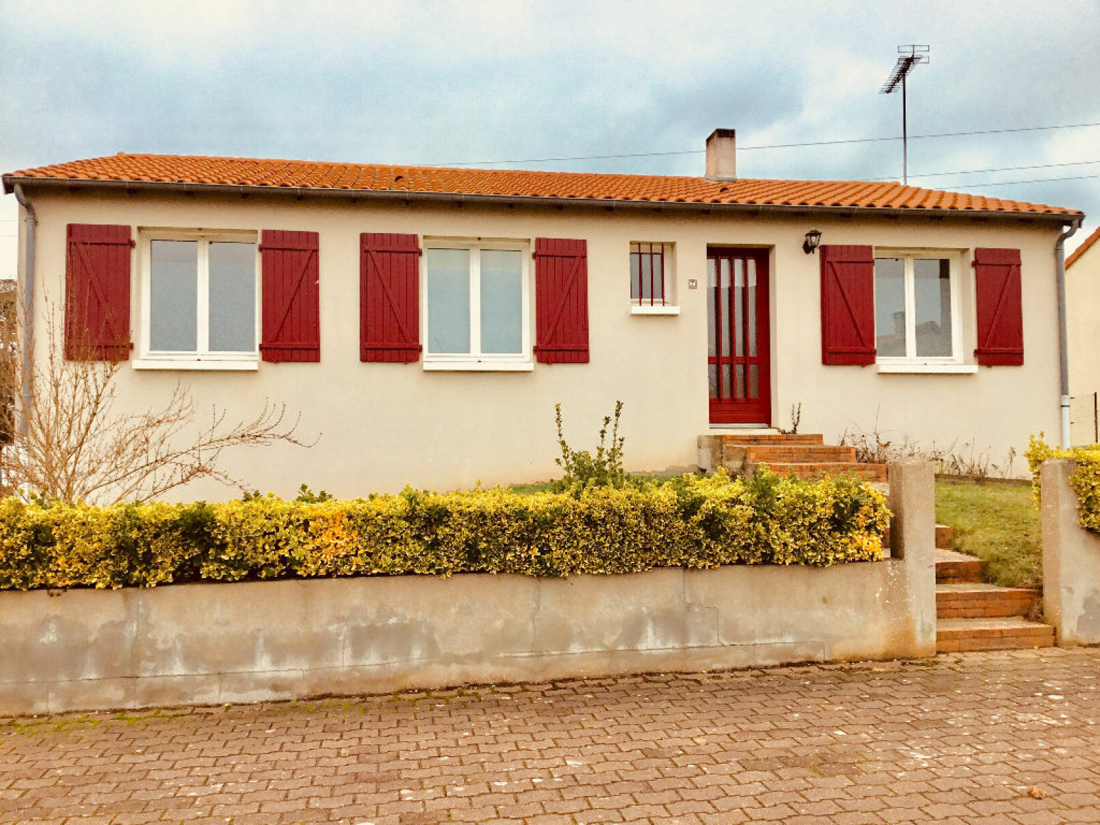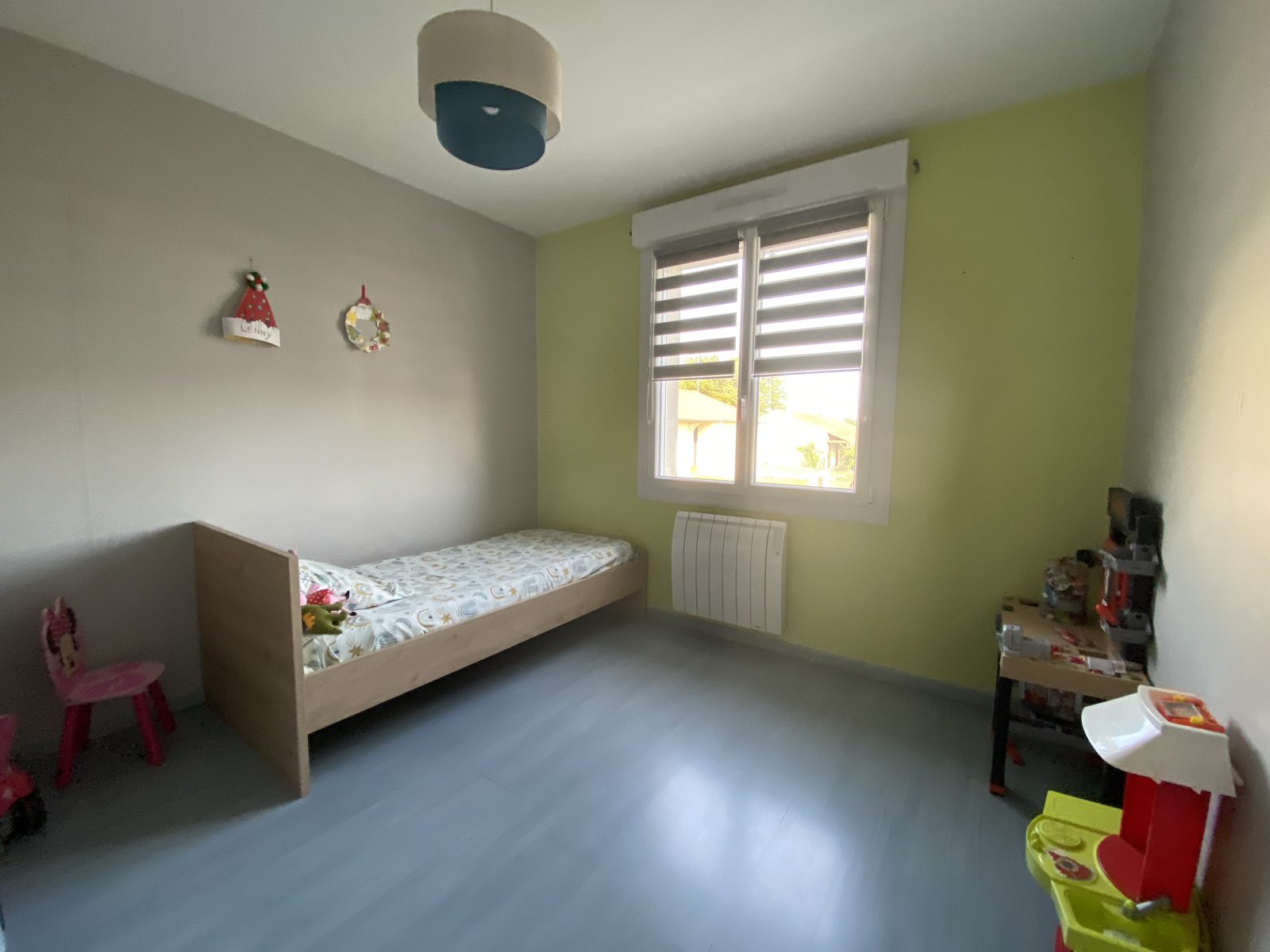 En réz-de-chaussé: pièce de vie avec cuisine aménagée, trois chambres, salle de bains, wc.