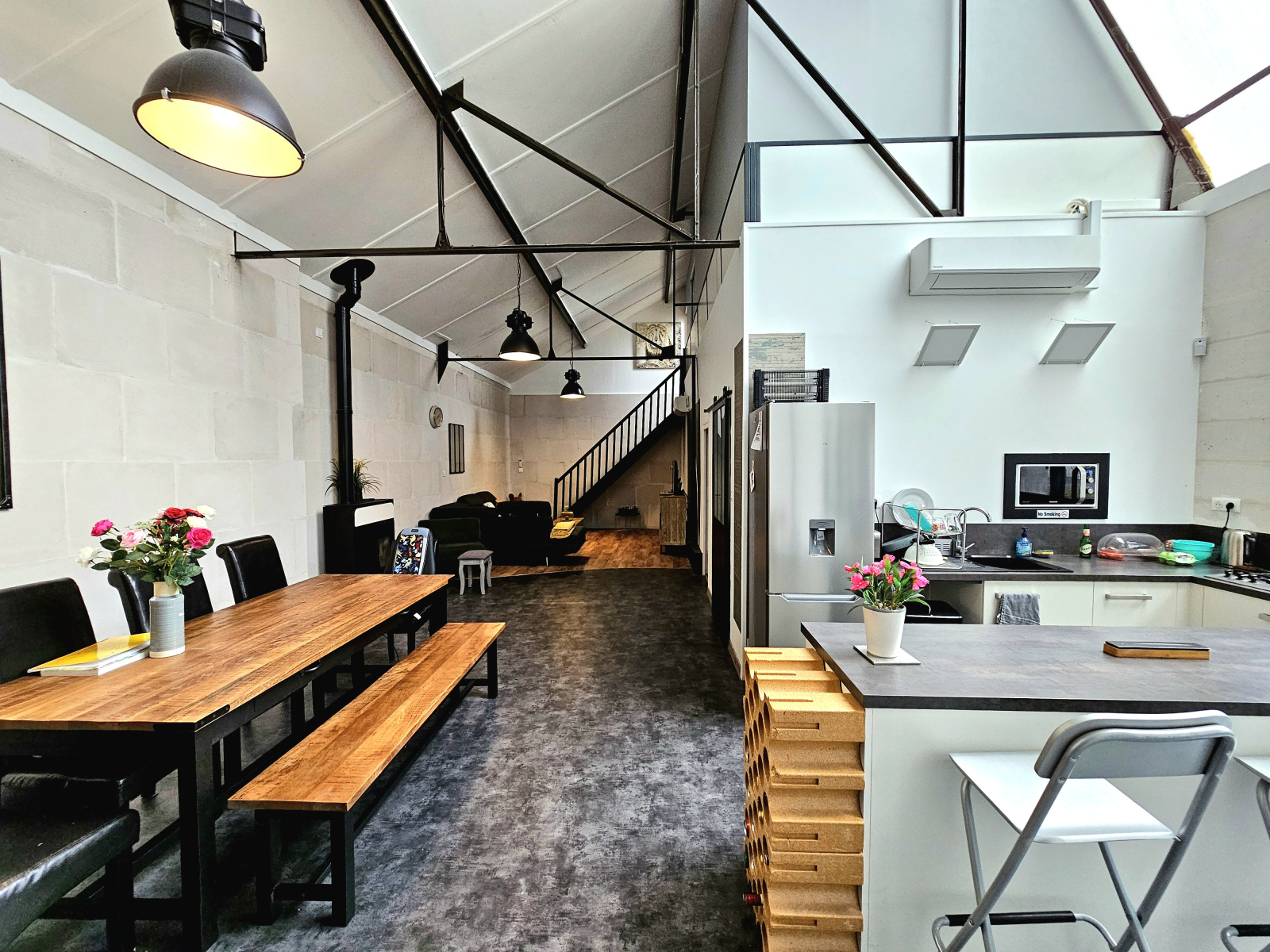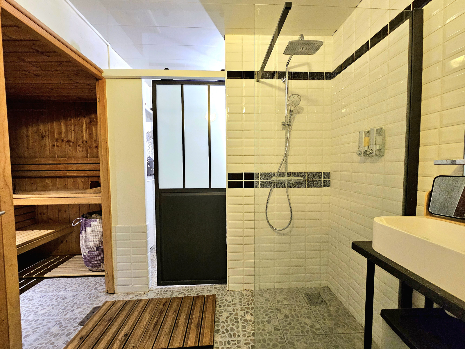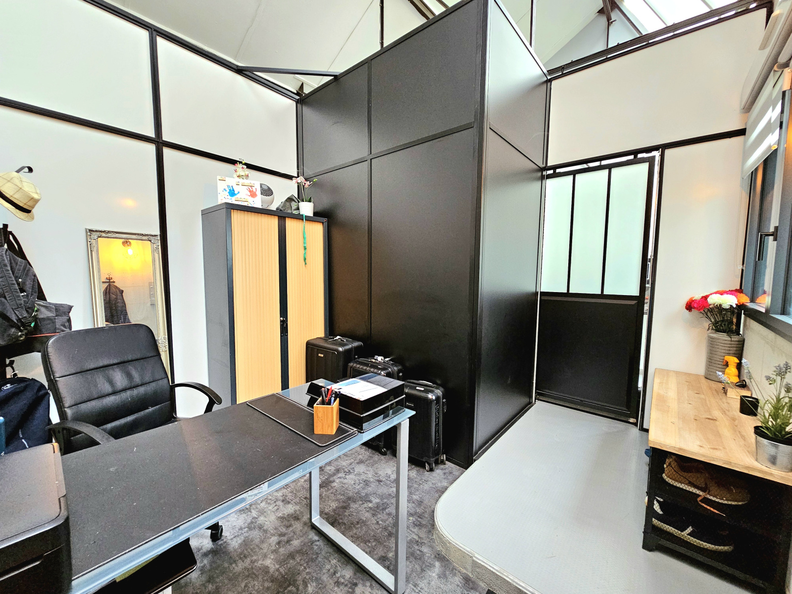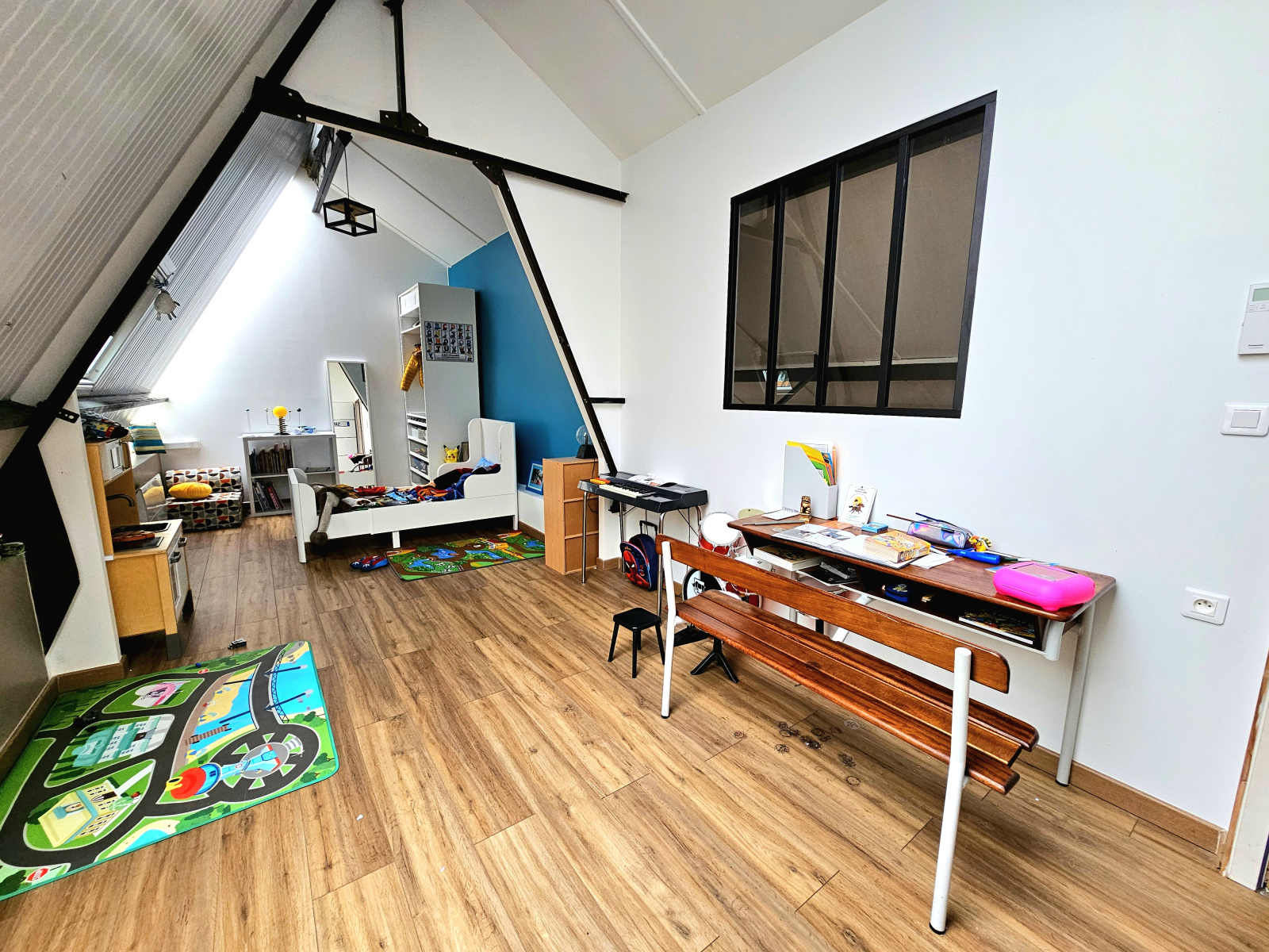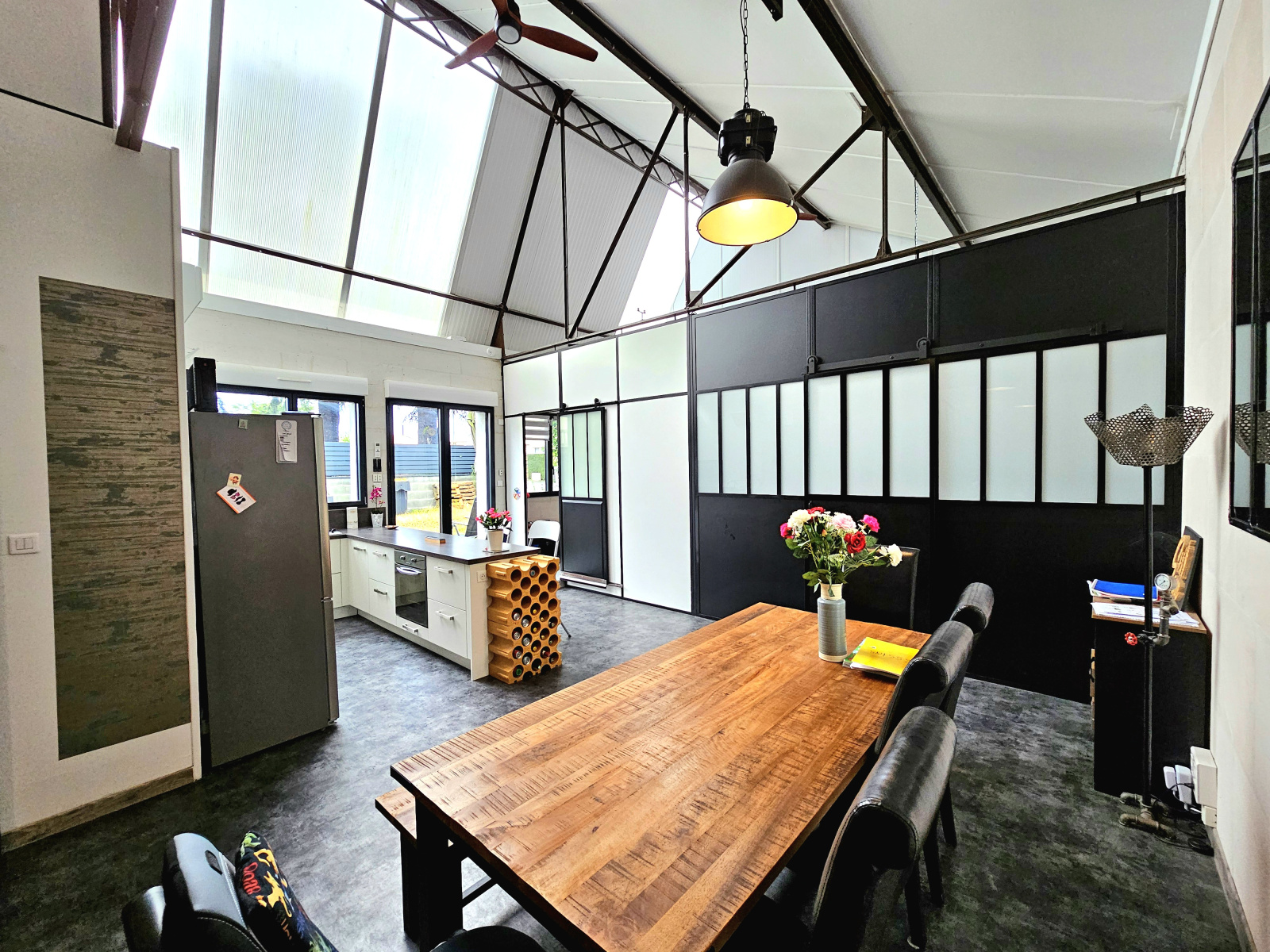 Exceptionnel ce loft offrant une pièce de vie de 55m2 avec cuisine équipée et poele à granulles, en rez de chaussé chambre avec espace dressing, bureau, salle d'eau avec sauna, douche et wc, buanderie, garage (2 voitures), remise.