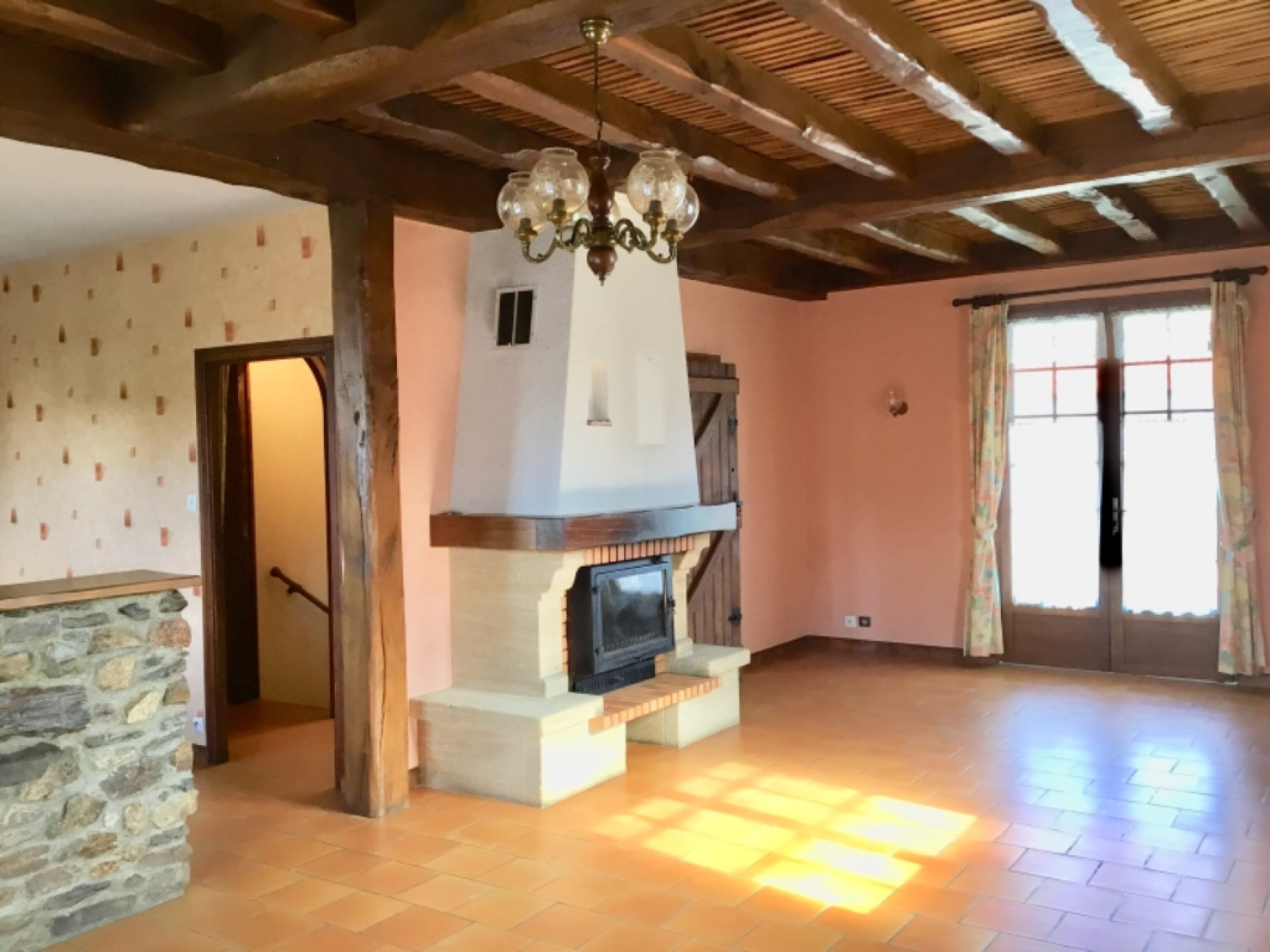 Maison Saint Germain Sur Moine de 95 M² habitables sur Sous-sol total (garage, buanderie et atelier), Elle offre une pièce de vie de 45 M² avec cuisine ouverte, cheminée avec insert. Trois chambres et salle de bains (Baignoire+ douche+double vasques), wc séparé. Jardin, L'ensemble sur une parcelle de 880 M². A pied des écoles et des commerces mais rue calme. Le jardin arrière est exposé sud/sud-ouest. Quelques travaux à prévoir : (fenêtres actuelles en bois simple vitrage et décoration) Mais habitable en l'état.