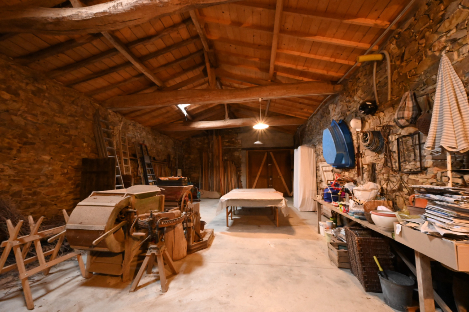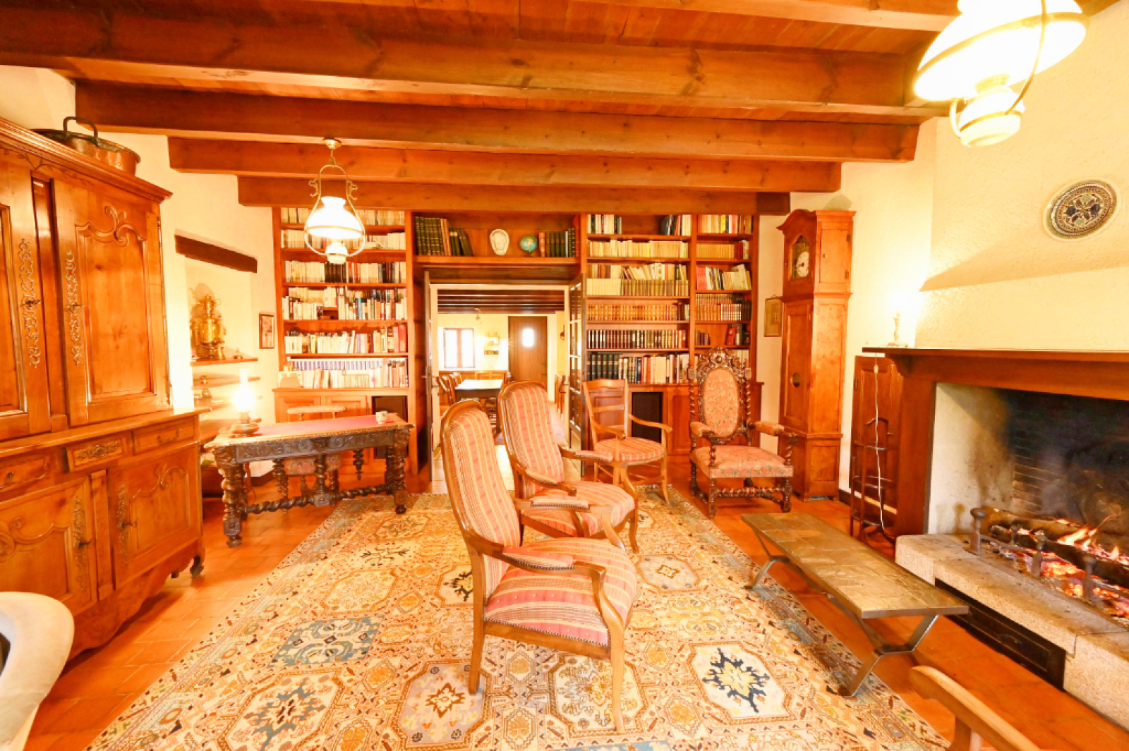ANCIEN CORPS DE FERME DU XIX SIECLE. TRES JOLIE MAISON RESTAUREE DANS LES ANNEES 80. CETTE MAISON DISPOSE D'UNE GRANDE CUISINE AMENAGEE DE STYLE ANCIEN, D'UN MAGNIFIQUE SALON BIBLIOTHEQUE AVEC SA CHEMINEE OUVERTE. D'UNE GRANDE PIECE POUVANT ETRE UTILISEE EN CHAMBRE OU EN SALLE A MANGER. LE REZ DE CHAUSSEE DIPOSE AUSSI D'UNE ARRIERE CUISINE BUANDERIE, D'UN ESPACE VESTIAIRE + WC ET D'UNE CHAUFFERIE. A L ETAGE 3 CHAMBRES, UNE SALLE DE DOUCHE, UN GRENIER. CETTE PROPRIETE DISPOSE AUSSI D'UNE SUPERBE GRANGE AMENAGEABLE EN PIECE DE VIE (POUTRES ET PIERRES APPARENTES). DEUX AUTRES DEPENDANCES AGREMENTENT CETTE PROPIETE (ATELIER+CAVE) + 3 GARAGES.