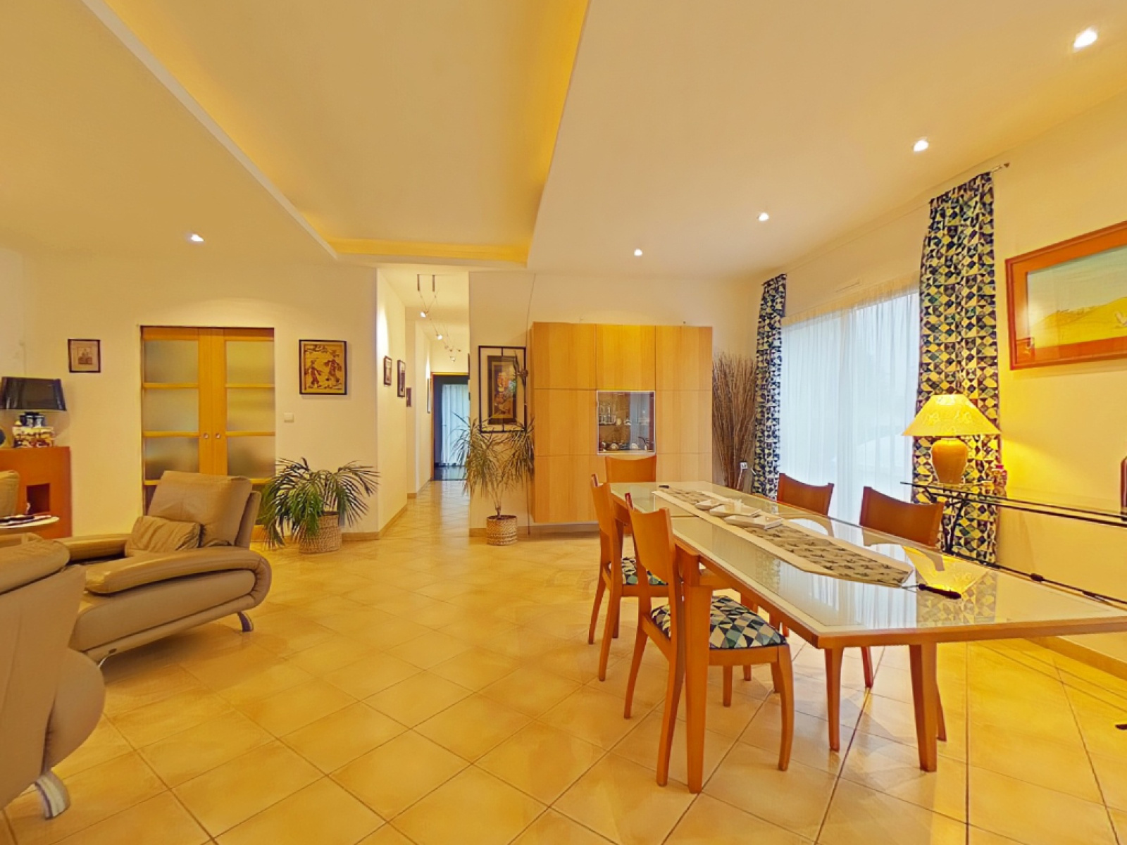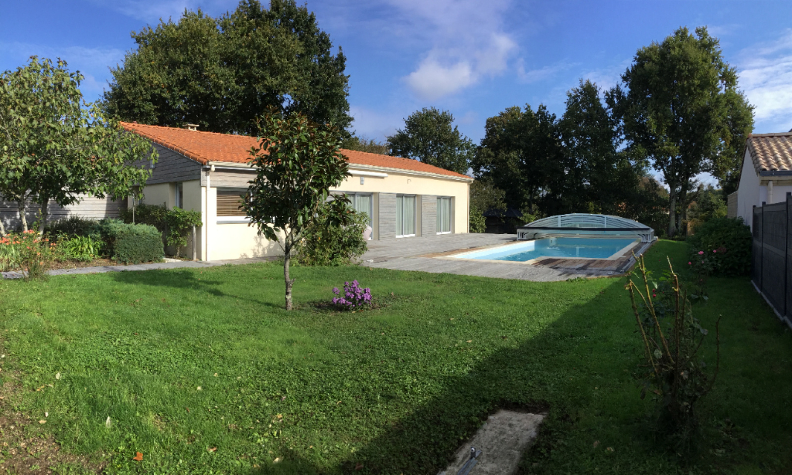 EXCLUSIVITE AGENCE Maison de plein pied, offrant hall d'entrée, ouvrant sur une pièce de vie (62m2)avec cuisine équipée et l'ensemble donnant sur terrasse et piscine. Coté nuit trois chambres, une salle d'eau équipée, wc. Un espace bureau, une buanderie , 2ème espace douche et wc et un grand garage viennent compléter ce bien - Equipements de qualité: chauffage au sol, aspiration centralisé, portail et garage ouvrant à télécommande, store banne sur terrasse, piscine couverte . Mais surtout un très beau jardin de plus de 1400m2 Une visite virtuelle vous sera communiqué sous simple demande à notre agence. POUR UNE VISITE EN PERIODE DE CONFINEMENT OPTEZ POUR LA VISITE VIRTUELLE EN NOUS CONTACTANT.