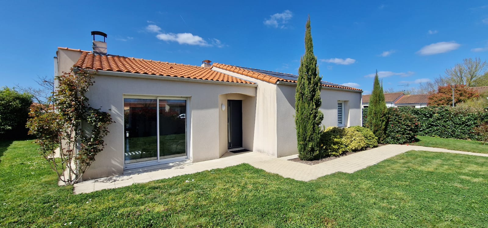 Proche de Clisson gare, sur la commune de Saint-Hilaire-de-Clisson, plain-pied comprenant salon/séjour avec poêle à bois et cuisine ouverte aménagée et équipée, 3 chambres, salle de bains, WC, buanderie, garage, panneaux photovoltaïques avec contrat jusqu'en 2029, rentabilité d'environ 2000 euros/an, panneaux solaires pour le deuxième chauffe-eau, récupérateur d'air chaud en intersaison, forage pour les toilettes et arrosage du jardin, abri de jardin, serre de culture avec espace potager.