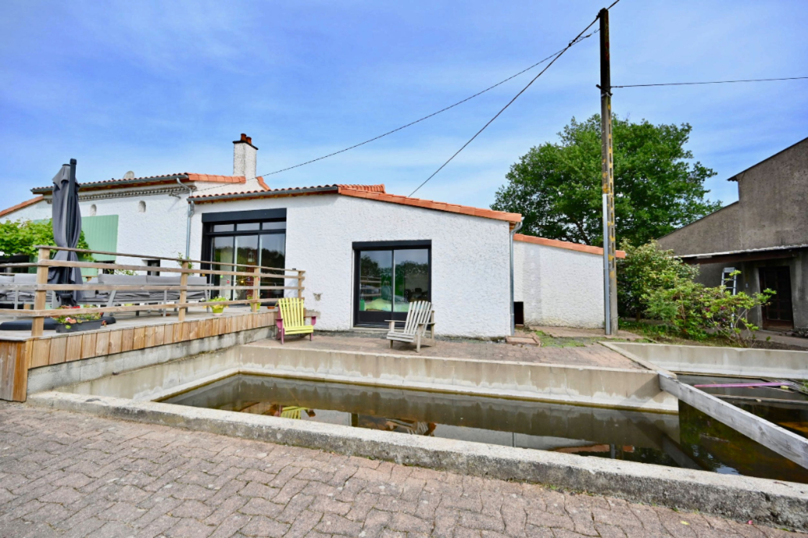 Très jolie longère rénovée, composée d'une salle à manger , d'un salon plus bar avec mezzanine, de quatre chambres dont une suite parentale. Cette maison est également munie de dépendances (un grand garage-atelier, une bergerie, une cave, une grande buanderie), le tout sur une parcelle de terrain de 4285 m2 TOITURE NEUVE