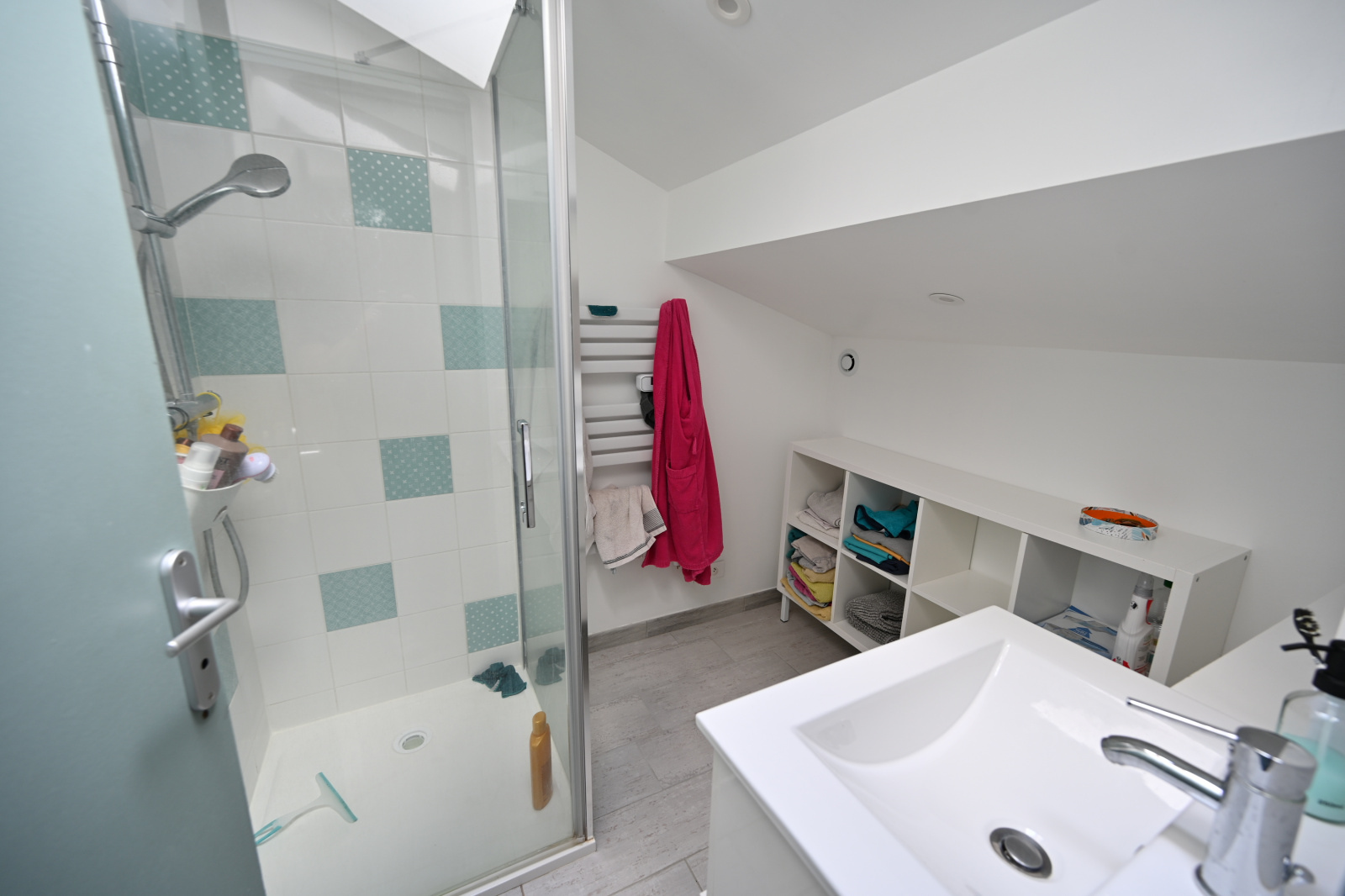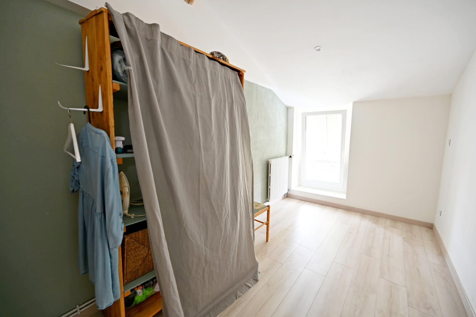 A L'ETAGE, DEUX CHAMBRES (DONT UNE AVEC PLACARD), UNE SALLE D'EAU, UN GRENIER;