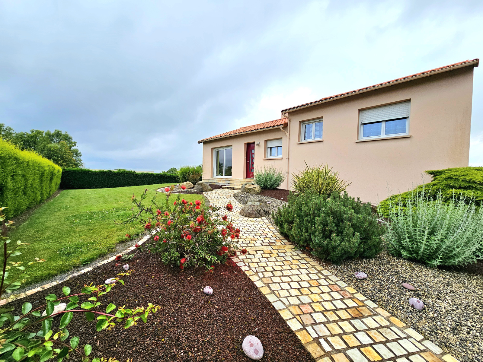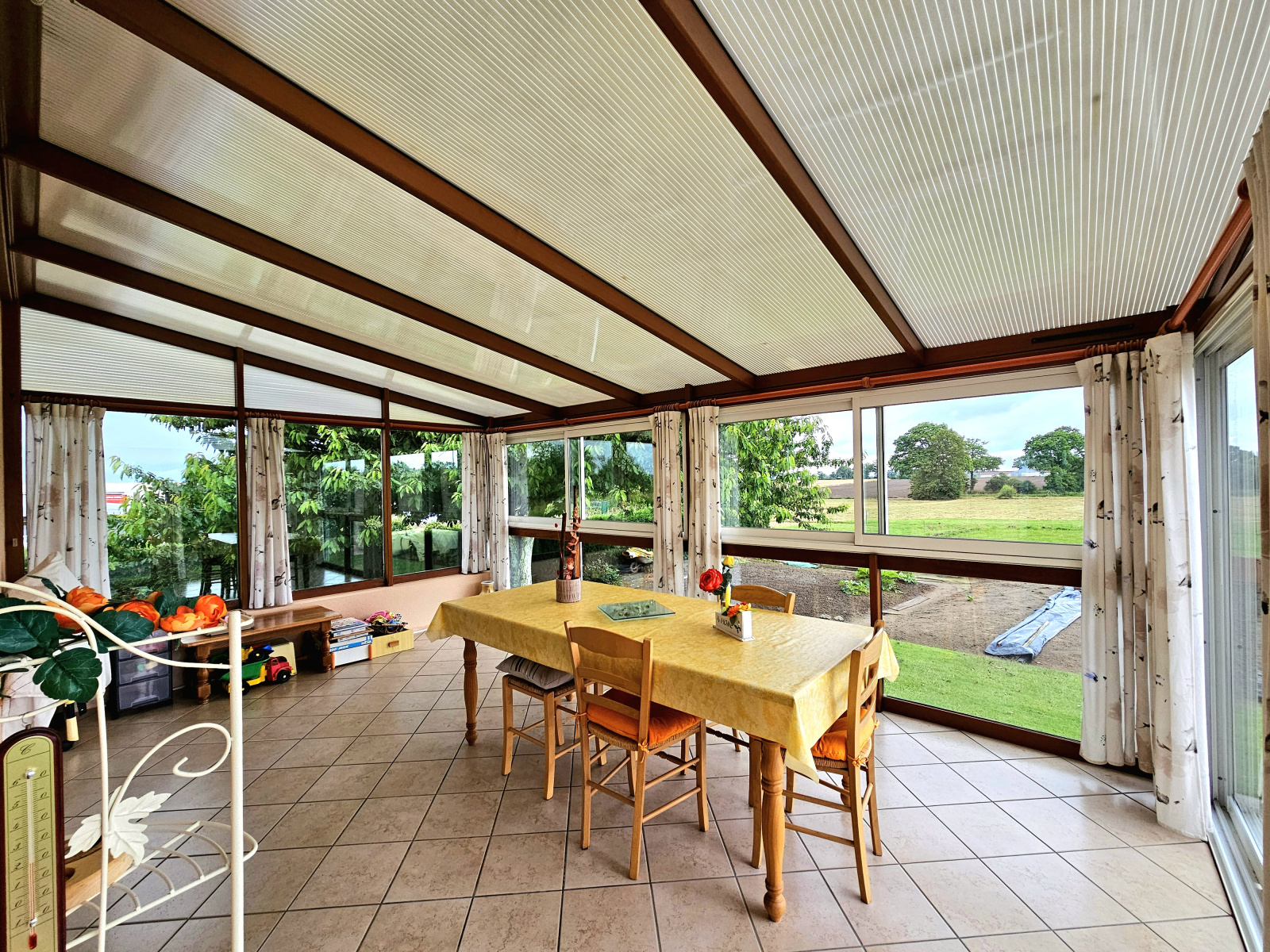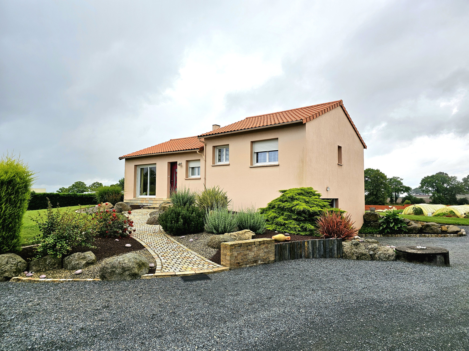 Sur la commune de Tillières, acquisition immobilière de cette maison. Si vous cherchez un bien où emménager en famille, venez vite voir ce logement. Cette maison sur sous-sol intégral mesurant 93.64m² de surface habitable comprend une cuisine séparé, un espace nuit comprenant 3 chambres, une salle de bain et un salon/séjour de 34m²ouvert sur une véranda de 18.25m². La construction s'est achevée en 1986. La maison vous offira un confort indéniable grace a sa pompe à chaleur gainé qui permet de climatioser et chauffer chaque piece de la maison. Le calme est assuré grâce aux fenêtres à double vitrage. À l'extérieur, vous disposerez d'un jardin occupant 1457m². La maison donne accès à une aire de parking pour se garer rapidement et un garage.